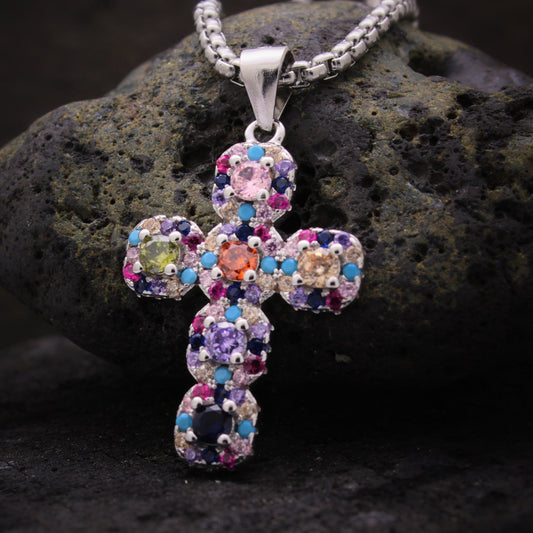 COLGANTE CON CRUZ MULTICOLOR DE PLATA 26 mm
