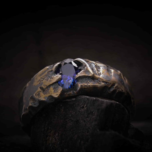 ANILLO CON ZAFIRO AZUL DE PLATA: modelo SÍSIFO