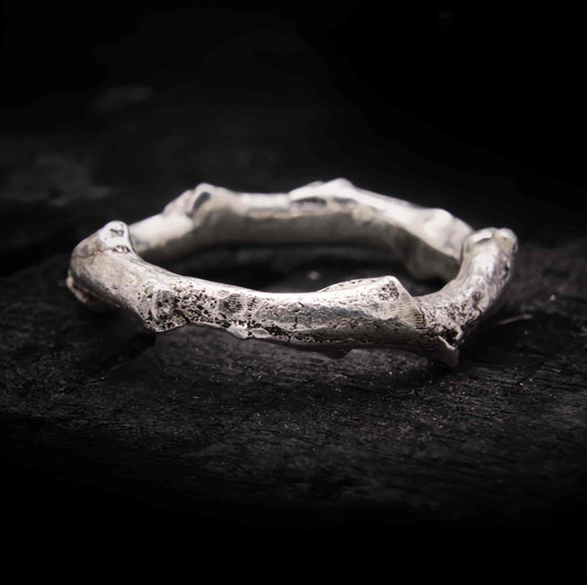 Para dar vida a nuestras sortijas utilizamos diferentes técnicas y materiales. Para algunos partimos de hilos de de plata maciza y les vamos dando forma, creando todos los elementos que compondrán los anillos de plata, soldamos todas las partes, y engarzamos las piedras, circonitas.... y lo acabamos puliendo para darle un acabo brillante, satinado o oxidado, siendo un proceso artesanal desde el principio hasta el final. Pero la forma que más nos gusta para crear anillos de plata para mujer es la fundición en arena, una técnica milenaria con la que conseguimos anillos originales con texturas irrepetibles.