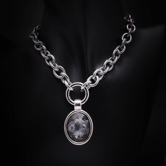 COLLAR ESLABONES GRANDES PLATA CON CRISTAL DIAMANTE NEGRO: modelo PEDROLO