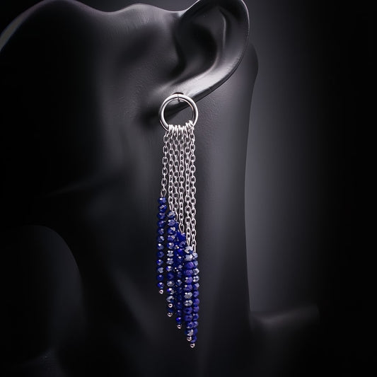 PENDIENTES LARGOS CADENA Y CRISTALES AZULES: modelo GLAM