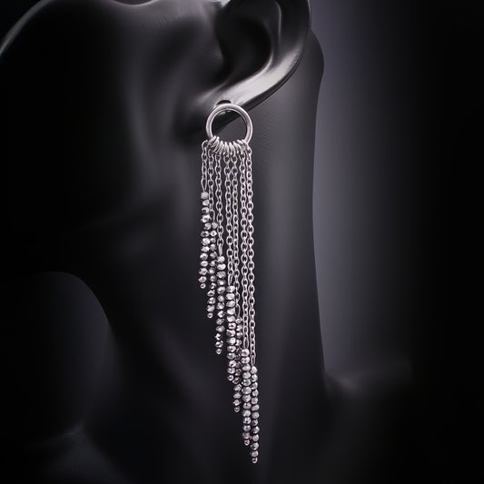 PENDIENTES LARGOS CADENA Y CRISTALES PLATEADOS: modelo GLAM