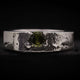 Anillo forjado en Plata de Ley maciza que alberga una circonita peridoto de color verde oliva intenso que contrasta con la crudeza del metal.