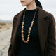 Collar marrón de piedras grandes naturales, con formas irregular y acabado pulido, longitud de 85 cm. Las piedras tienen unas dimensiones de 20x13 y 15x10 mm aprox.