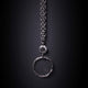 Collar largo con colgante de acero inoxidable. Este collar largo de cadena gruesa esta hecho de acero inoxidable, colgante de zamak chapado con 12 micras plata de plata pura y detalles de cristales austríacos.