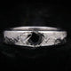 En medio de la plata bruta y texturizada, emerge la luz oscura. Hemos engastado una Circonita Negra de corte brillante que rompe la estética rugosa con su elegancia geométrica. Un contraste brutal entre lo salvaje (la textura) y lo sofisticado (la piedra).